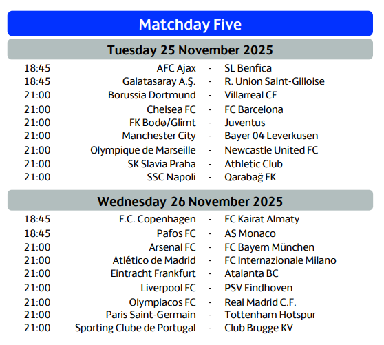 ⚽ Matchday 5 – 2025년 11월 25일(화) ~ 11월 26일(수)