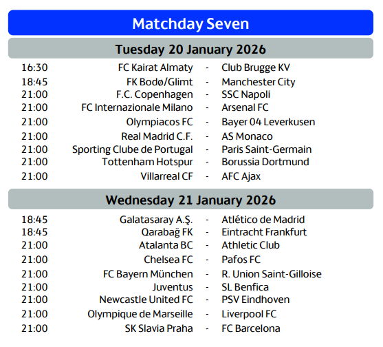⚽ Matchday 7 – 2026년 1월 20일(화) ~ 1월 21일(수)
