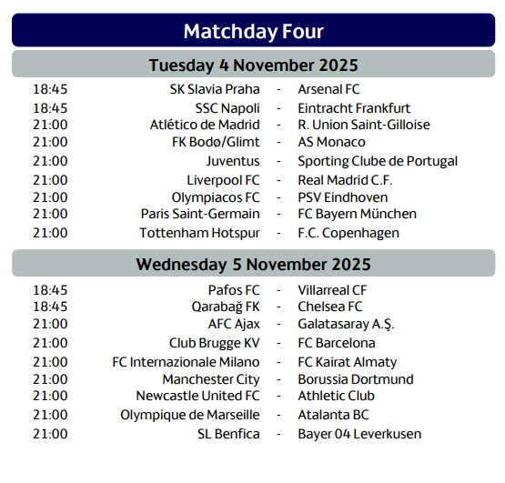 ⚽ Matchday 4 – 2025년 11월 4일(화) ~ 11월 5일(수)