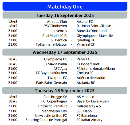 ⚽ Matchday 1 – 2025년 9월 16일(화) ~ 18일(목)