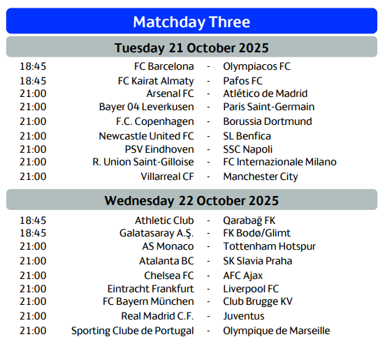 ⚽ Matchday 3 – 2025년 10월 21일(화) ~ 22일(수)