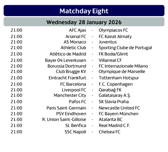 ⚽ Matchday 8 – 2026년 1월 28일 (수)