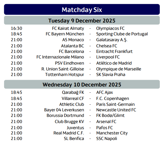 ⚽ Matchday 6 – 2025년 12월 9일(화) ~ 12월 10일(수)